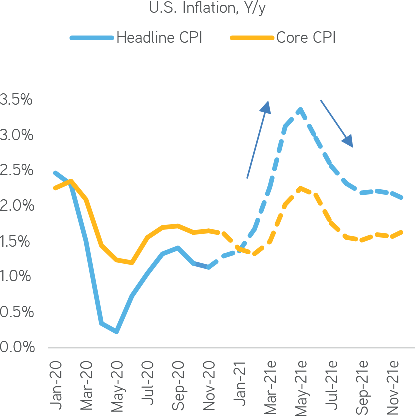 根據KKR的數據,到7月前短期通膨的預期將會持續擴大,如我在之前文章提過,在寬鬆面臨結束之際,通膨的壓力將會預先出現,2021年預估也是如此,加上2020年的低基期,很可能在2~3Q時通膨會持續進行壓力測試,而國債利率會不斷在1.75%~2%間測試,並對成長股造成壓力。