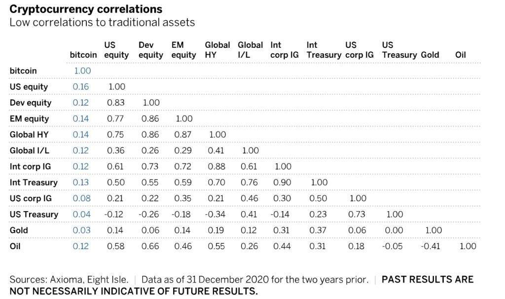 比特幣與其他資產關聯性低,降低本身波動性影響